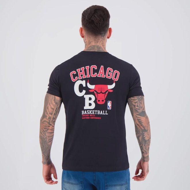 - Sobre o produto - Composição: 100% Algodão Cor predominante: Preta Time: Chicago Bulls Gênero: Masculino Escudo: Estampado Origem: Nacional Manga: Curta Gola: Careca Dimensões aproximadas (A x L): P: 70 x 50 cm M: 72 x 52 cm G: 74 x 54 cm GG: 76 x 56 cm - ref: M17UZQ