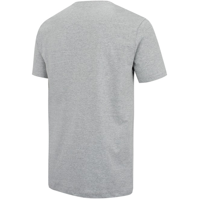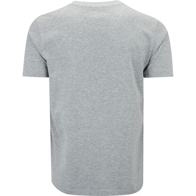 A gola da camiseta masculina é careca com tira interna em tecido que ajuda a diminuir o atrito de contato com a costura.