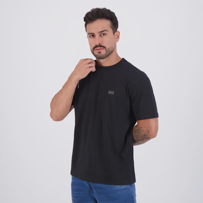 Composição: 100% Algodão Cor predominante: Preta Indicado para: Casual Origem: Nacional Logo: Aplicada Manga: Curta Gola: Careca Dimensões aproximadas (A x L): P: 70 x 52 cm M: 72 x 54 cm G: 74 x 56 cm GG: 76 x 58 cm