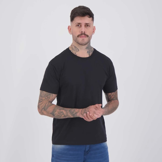 - Sobre o produto - Composição: 100% Algodão Cor predominante: Preta Indicado para: Casual Gênero: Masculino Origem: Nacional Logo: Estampada Manga: Curta Gola: Careca Dimensões aproximadas (A x L): P: 69 x 53 cm M: 71 x 55 cm G: 73 x 57 cm GG: 75 x 59 cm - ref: M17VLT