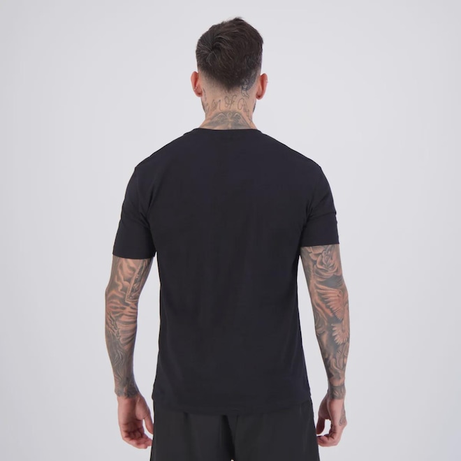 Composição: 100% Algodão Cor predominante: Preta Gênero: Masculino Origem: Nacional Logo: Estampada Manga: Curta Gola: Careca Dimensões aproximadas (A x L): P: 70 x 53 cm M: 72 x 55 cm G: 74 x 57 cm GG: 76 x 59 cm