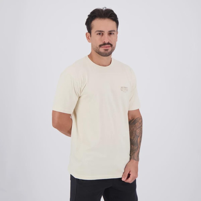 Composição: 100% Algodão Cor Predominante: Bege Indicado para: Casual Logo: Estampada Gênero: Masculino Origem: Nacional Manga: Curta Gola: Careca Dimensões aproximadas (A x L): P (S): 69 x 50 cm M (M): 71 x 52 cm G (L): 73 x 54 cm GG (XL): 75 x 56 cm