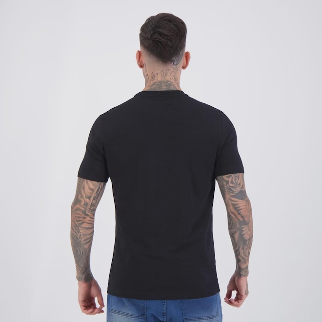 Composição: 100% Algodão Cor predominante: Preta Logo: Emborrachada Gênero: Masculino Origem: Nacional Manga: Curta Gola: Careca Dimensões aproximadas (A x L): P: 72 x 50 cm M: 74 x 52 cm G: 76 x 54 cm GG: 78 x 56 cm