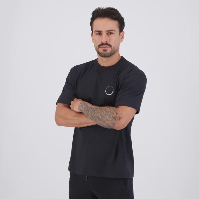 Composição: 100% Algodão Cor Predominante: Preto Indicado para: Casual Logo: Estampada Gênero: Masculino Origem: Nacional Manga: Curta Gola: Careca Dimensões aproximadas (A x L): P (S): 71 x 52 cm M (M): 73 x 54 cm G (L): 75 x 56 cm GG (XL): 77 x 58 cm