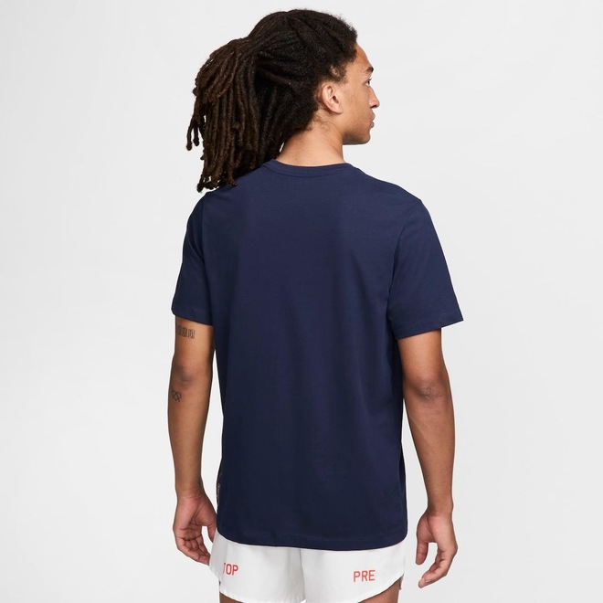 Mantenha a calma com esta camiseta Nike leve e respirável. A tecnologia Nike Dri-FIT afasta o suor da pele para uma evaporação mais rápida, ajudando você a permanecer seco e confortável.
