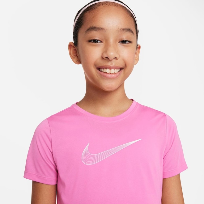 A nossa camiseta mais versátil para qualquer esporte e atividade? Demorou! A camiseta Nike Dri-FIT One é confortável de usar, seja para correr, pular ou brincar. É suave e leve, com suporte antissuor. Este produto é 100% feito com fibras de poliéster reciclado.
