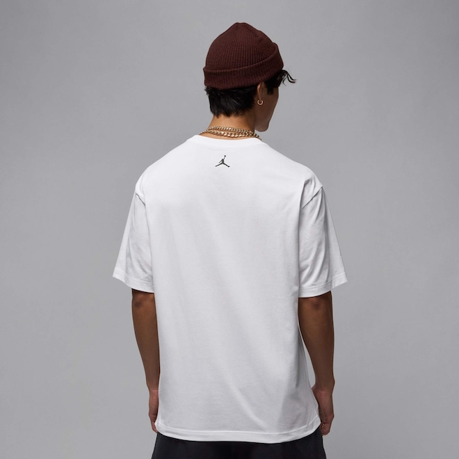 A gola careca canelada, com tira interna, garante máximo conforto sem atrito. Sua estampa personalizada celebra a lenda Jordan, adicionando autenticidade e exclusividade ao seu visual.