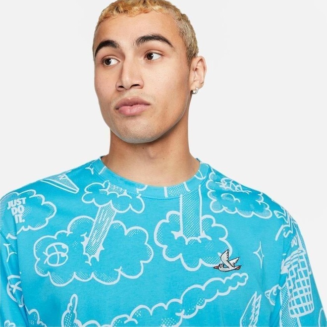 Voe alto enquanto navega até a borda nesta camiseta espaçosa.