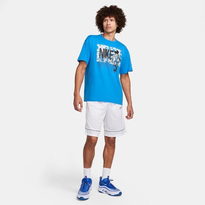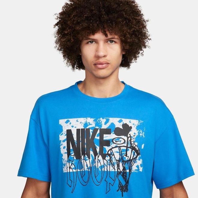 O basquete nunca para com essa camiseta Nike de corte solto. As estampas celebram o crescimento e a evolução do esporte com temas da natureza.