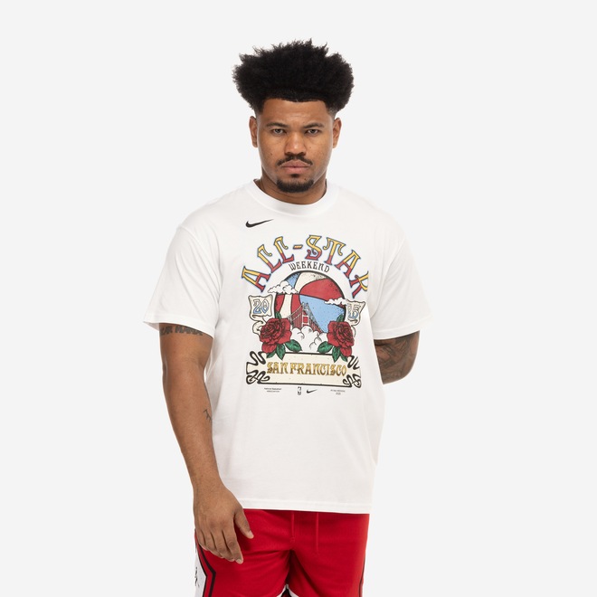 Com modelagem Max90, essa camiseta em algodão 100% oferece caimento solto, ombros caídos e um visual vibrante para marcar presença no All-Star Weekend.