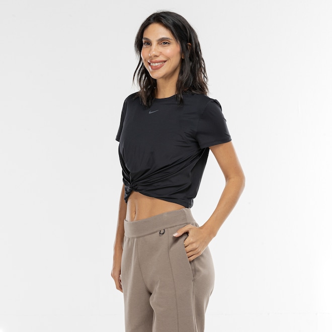 O tecido sedoso proporciona toque suave, enquanto a tecnologia Nike Dri-FIT absorve o suor da pele, favorecendo a rápida evaporação e mantendo você seca e confortável o dia todo.