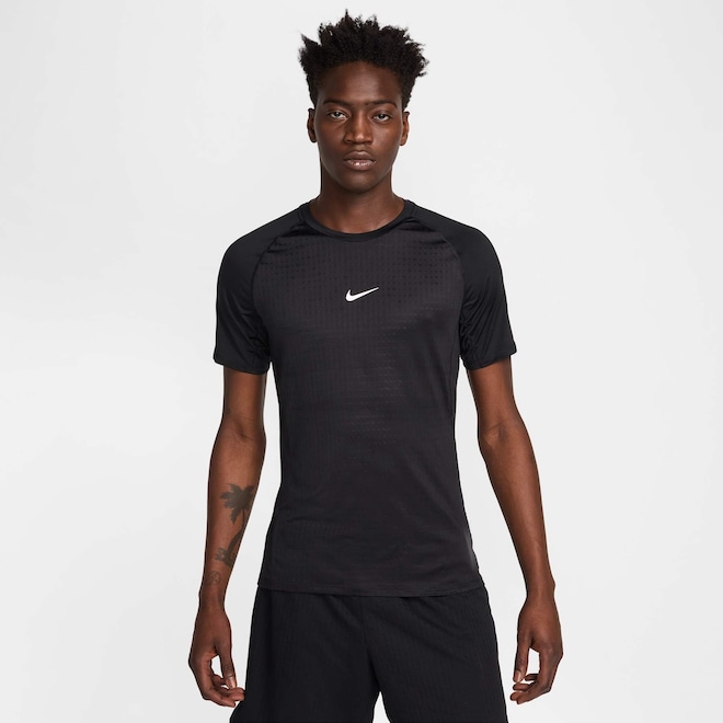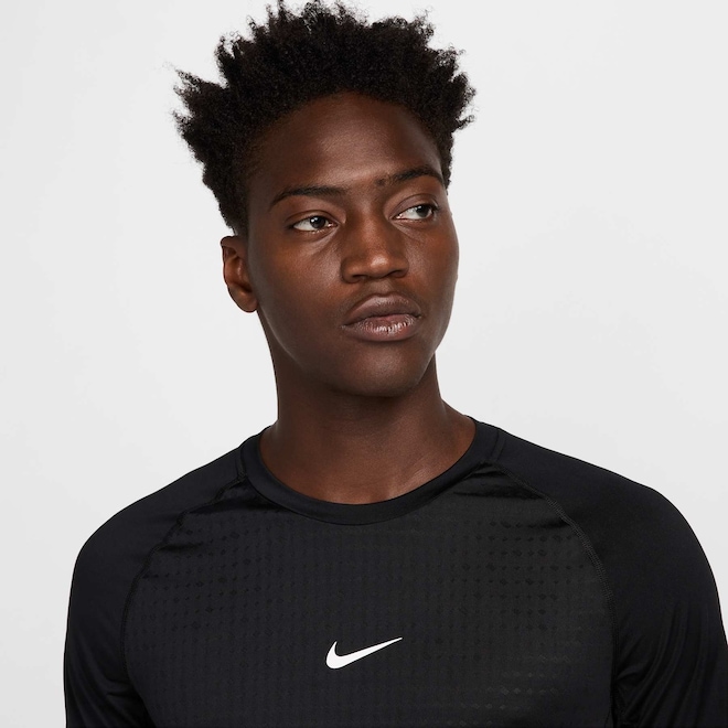 A camiseta Nike Pro de corte justo foi projetada para proporcionar mais respirabilidade e resfriamento quando o treino começa a esquentar. O material macio e perfurado conta com a tecnologia Dri-FIT que absorve o suor.