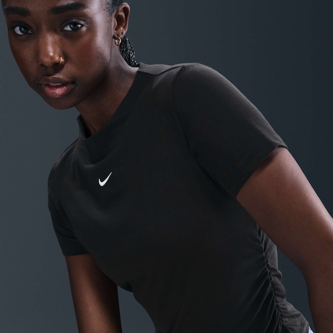 As laterais franzidas elevam o visual desta camiseta com gola falsa. Com tecido jersey macio e elástico e um sutil drapeado, esta peça é ideal para o dia a dia.