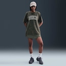 Ela tem um caimento solto, ombros caídos, mangas mais longas e um toque espaçoso no corpo e nos quadris para um visual casual. O algodão de peso médio é macio e moderadamente estruturado para conforto resistente todos os dias.
