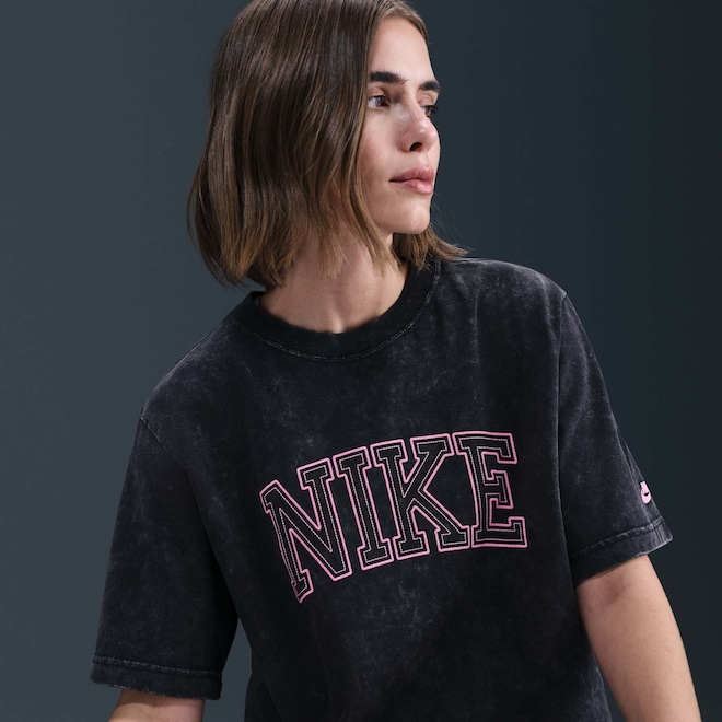 Ela tem um caimento solto, ombros caídos, mangas mais longas e um toque espaçoso no corpo e nos quadris para um visual casual. O algodão de peso médio é macio e moderadamente estruturado para conforto resistente todos os dias.