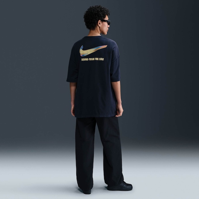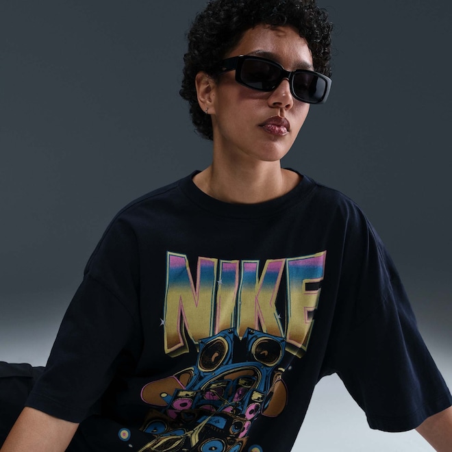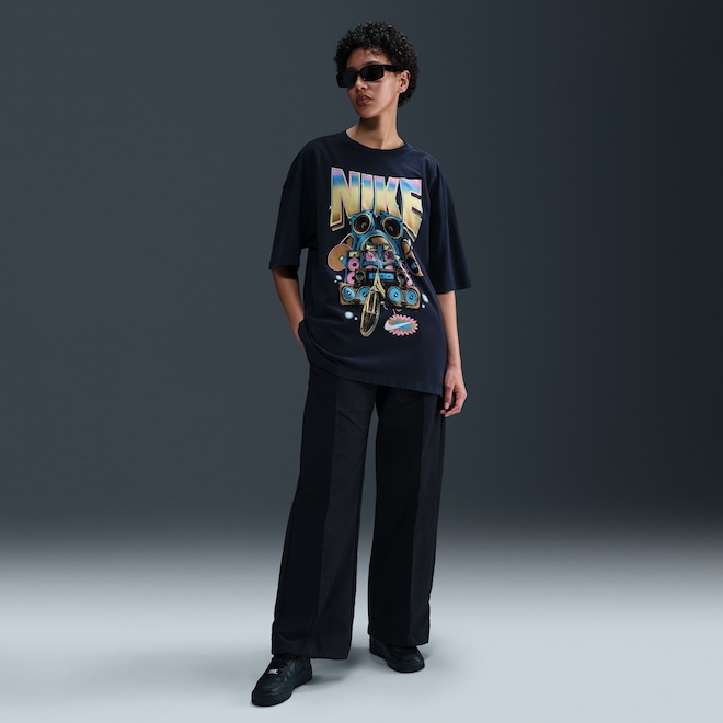O algodão de peso médio e um caimento oversized dão um toque de volume e conforto ao seu look com esta camiseta estampada.