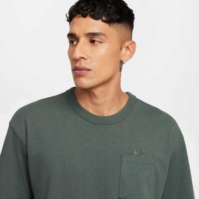 A Camiseta Nike Sportswear Premium Essentials é feita com um jersey de algodão pesado e corte solto para uma sensação macia e resistente que você poderá aproveitar por muitos anos. O Futura bordado é parcialmente coberto pelo bolso nessa camiseta confortável e clean. Este produto é feito com, no mínimo, 75% de fibras de algodão orgânico.