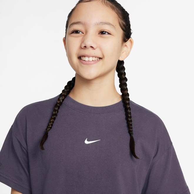 Algodão macio e caimento espaçoso tornam essa camiseta uma escolha essencial para o dia a dia. Costuras colocadas mais para baixo nos ombros e um pouco de espaço extra no corpo dão a você uma sensação confortável sem ser grande ou longa demais.