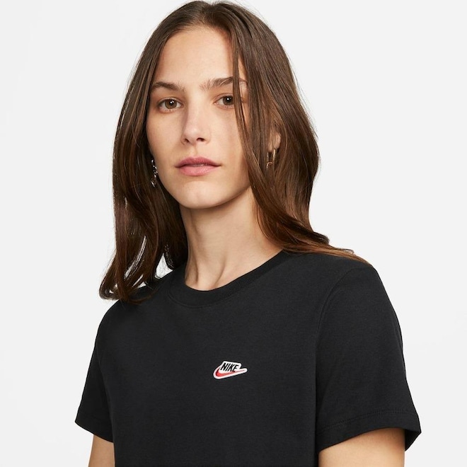 A Camiseta Feminina Nike Sportswear veste você com a suave sensação do algodão jersey e um logo Nike no peito.