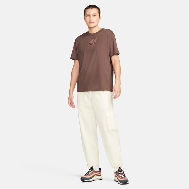 Aproveite o conforto do algodão macio de peso médio. Os ombros caídos e o corte solto conferem a esta camiseta um belo caimento e o gráfico bordado confere um acabamento premium.