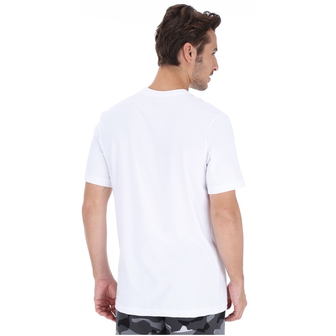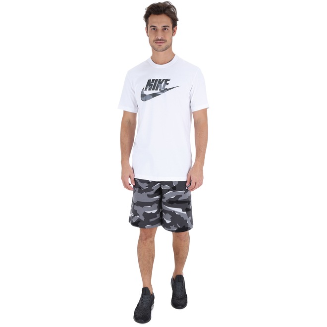 Básica e versátil, a Camiseta Nike Tee permite vários looks modernos e descolados com outras peças de roupas. Sua composição mescla leveza, maciez e ótimo caimento, proporcionando maior naturalidade aos movimentos. Sua gola é canelada que confere um encaixe confortável com tira interna em tecido que diminui o desconforto do atrito da costura. Já o logo icônico apresenta estampa camuflada que valoriza o visual da camiseta masculina. Não perca a chance e aproveite o preço para comprar!