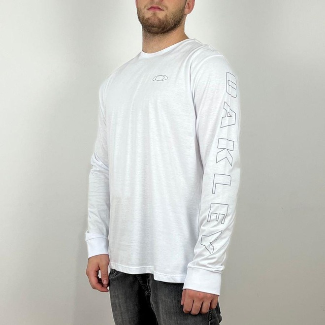 Camiseta manga longa com logo da marca na manga esquerda oferece estilo único ao modelo. 50%Poliester 50%Algodão Sobre a marca Oakley A marca Oakley foi criada em 1975 pelo cientista Jim Jannard, que começou criando manoplas para motocicletas com um design bastante inovador.
