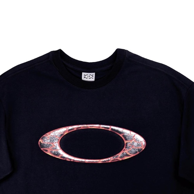 Confeccionada em 100% algodão, a malha é macia e respirável, proporcionando sensação de frescor e bem-estar. O grande destaque da peça é o icônico logo Oakley Ellipse, aplicado em estampa à base dágua com um design inspirado em magma uma representação visual ousada e cheia de atitude, que reforça a identidade da marca.