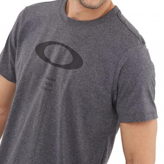 Camiseta Oakley. Tecido diferenciado (reciclado). Logo Oakley Ellipse (Silk Base d?água) no peito. Logo Oakley O-REC (Silk) nas costas parte inferior.