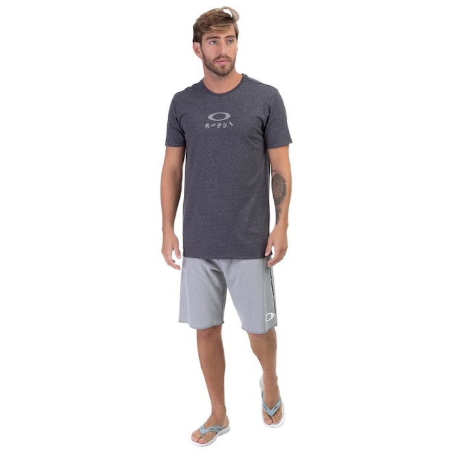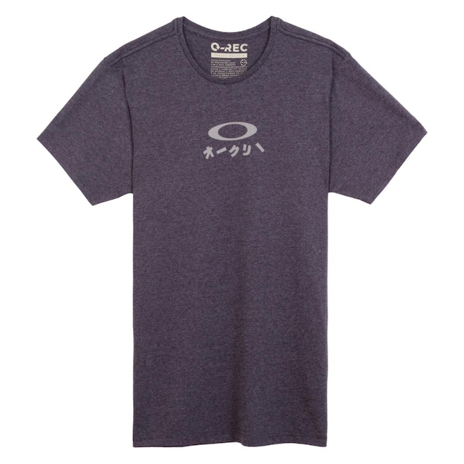 O destaque vai para o logo Ellipse Oakley acompanhado de caracteres japoneses, em silk de alta qualidade, que simboliza a fusão entre inovação, performance e cultura urbana. Uma peça que reflete o compromisso da marca com o meio ambiente e o estilo de vida moderno.