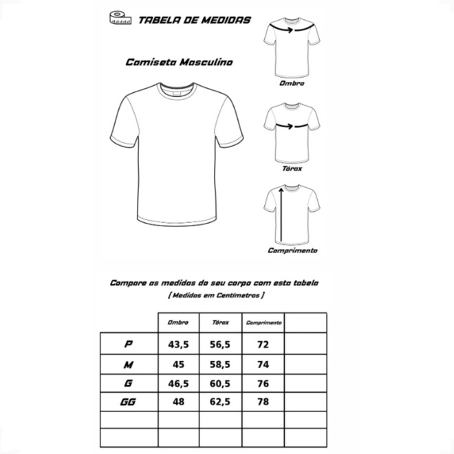 Tabela de medidas aproximadas (Ombro x Tórax x Comprimento)