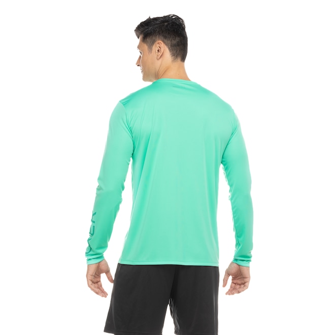 Ainda conta com gola careca e tem tira interna que protege do atrito junto à pele, mangas longas e seu tecido é em poliéster que garante ótimo conforto.