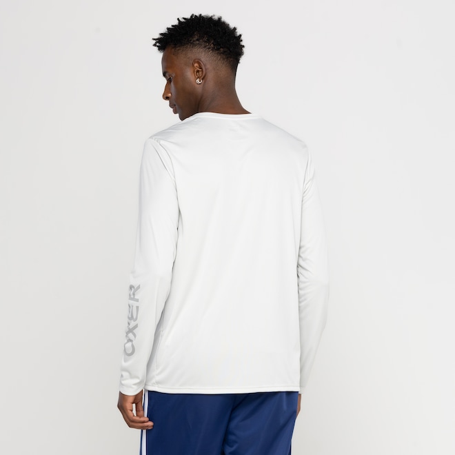 Ainda conta com gola careca e tem tira interna que protege do atrito junto à pele, mangas longas e seu tecido é em poliéster que garante ótimo conforto.
