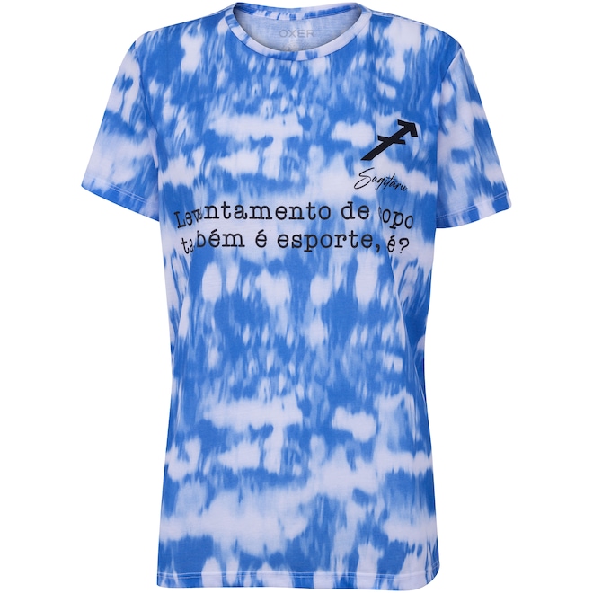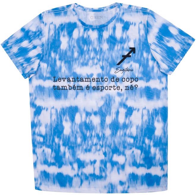 Multiuso, a Camiseta Oxer Tie Dye Sagitário oferece um look versátil, moderno para qualquer ocasião casual e uma frase motivacional do seu signo.