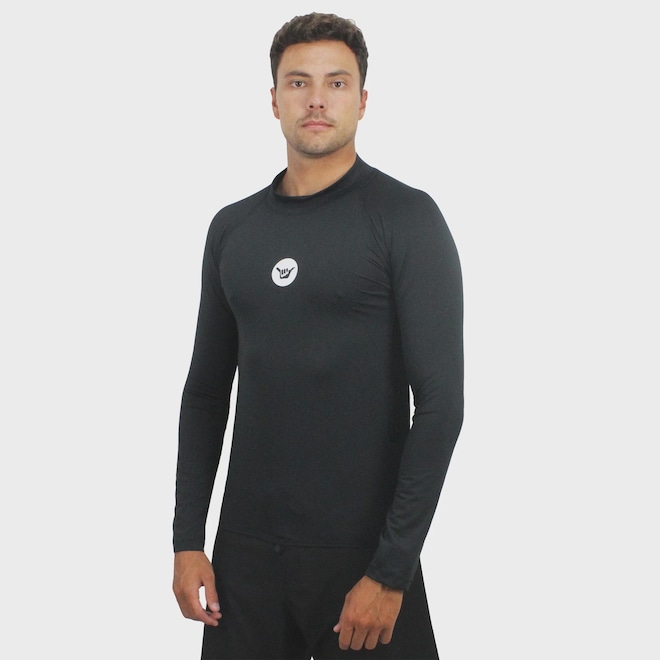 A Camiseta para Surf Hang Loose Basic Black é produzida com tecido leve e de secamgem rápida, em uma combinação de poliéster com elastano, conta com proteção UV 50+. Estampa com o logo Hang Loose em silk no peito e nas costas, modelagem competition.