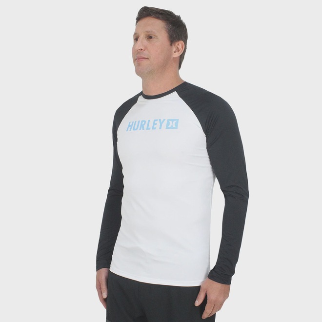 A Camiseta para Surf Hurley Square Branca é produzida com tecido leve e confotável em uma combinação de poliéster com elastano, conta com proteção UV 50+, tratamento Anti Microbiano e secagem rápida. Estampa com o logo Hurley em silk no peito, modelagem relaxed.