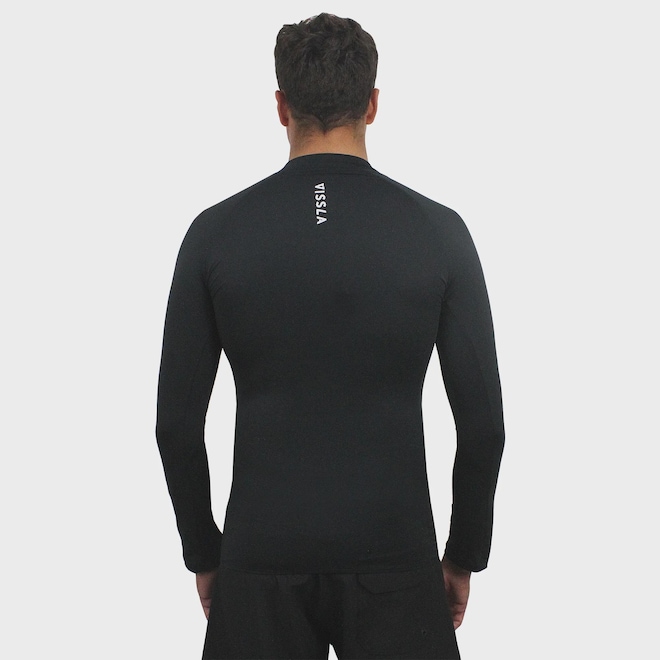 A Camiseta para Surf Vissla All Times Black é produzida com tecido leve e de secamgem rápida, em uma combinação de poliéster com elastano, conta com proteção UV 50+. Estampa com o logo Vissla em silk no peito e nas costas, modelagem competition.