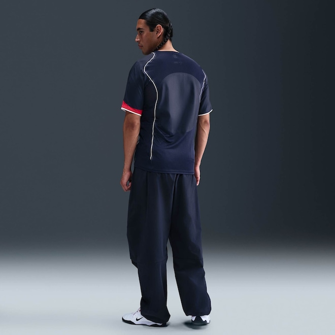A camiseta Reissue parece ter saído direto do cofre. Com cores exclusivas, logos e detalhes vintage, esta releitura homenageia a coleção Total 90 que a Nike fez para o time do PSG de 2004.