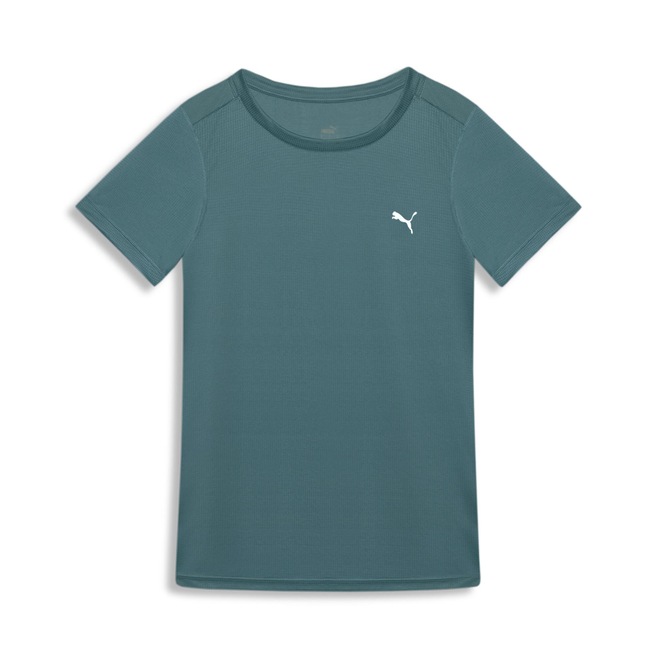 Camiseta feminina básica com gola redonda e mangas curtas. Tecido de malha texturizada em canaletas 100% Poliéster. Tecido com tecnologia Drycell: Tecnologia PUMA de alta performance com propriedades de absorção de umidade que mantém o corpo seco durante o treino. Logo Puma do lado esquerdo do peito com tecnologia refletiva.