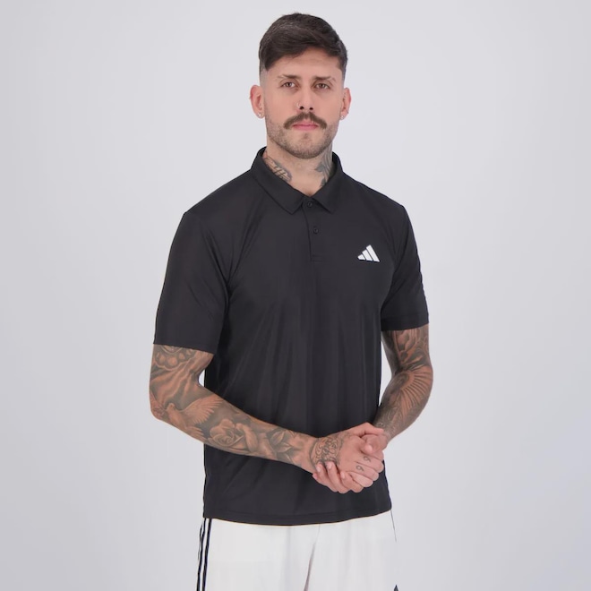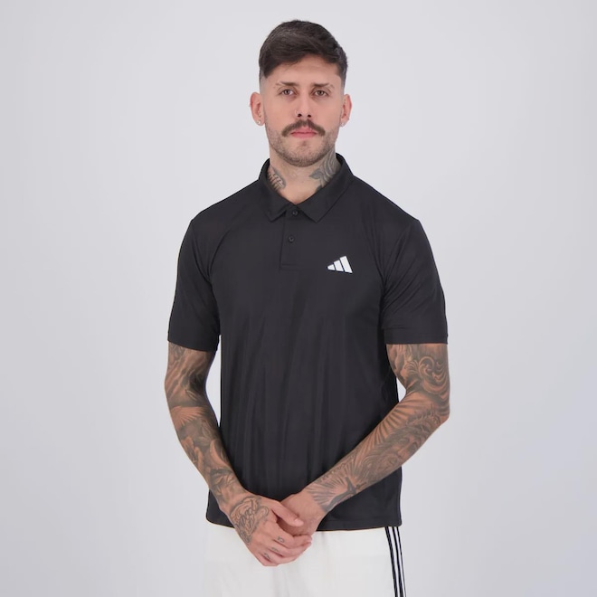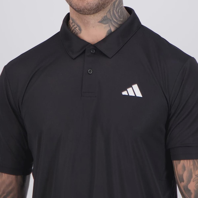 Tecnologia ClimaCool: Utiliza ventilação estratégica e tecidos que aceleram a evaporação do suor para manter o corpo seco. Ela melhora a respirabilidade e o conforto térmico durante treinos e atividades intensas. Composição: 100% Poliéster Cor predominante: Preta Indicado para: Treino Gênero: Masculino Origem: Importada Logo: Estampada Manga: Curta Gola: Polo Dimensões aproximadas (A x L): PP: 68 x 51 cm P: 70 x 54 cm M: 72 x 56 cm G: 74 x 57 cm GG: 76 x 59 cm EG: 78 x 61 cm