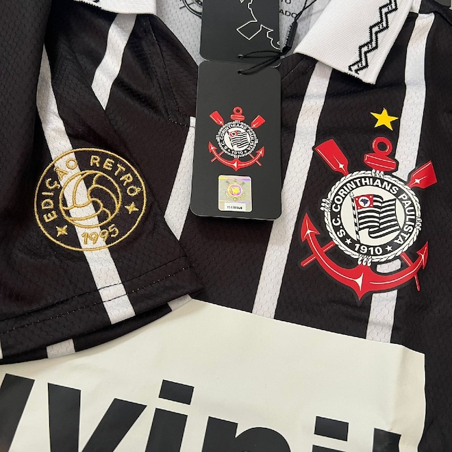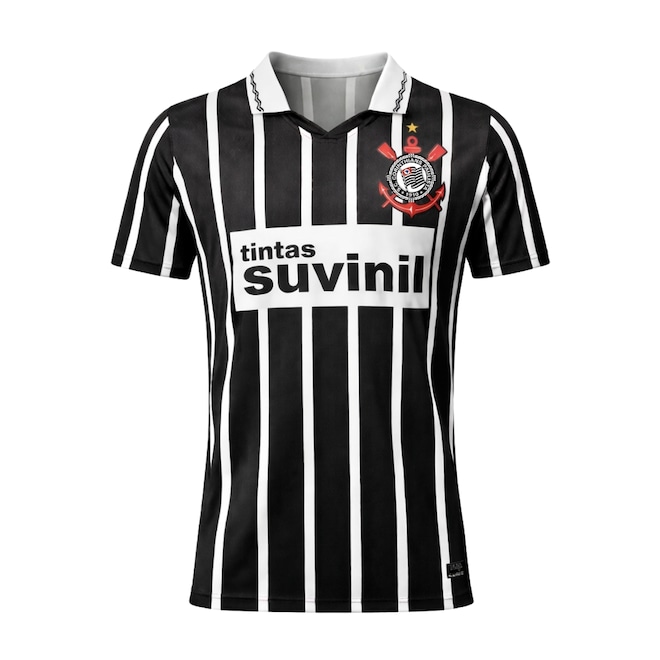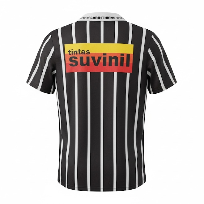Produzida em poliéster resistente e confortável, ela traz as cores icônicas do clube em um design clássico com gola polo e mangas curtas. O escudo estampado reforça o orgulho corinthiano, enquanto o patrocinador Suvinil dá o toque nostálgico que remete fielmente ao uniforme original de 1995.