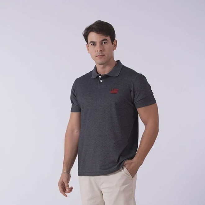 Com modelagem moderna, a Polo Flamengo Lema traz aplicação de bordado da bandeira do clube, unindo elegância e identidade rubro-negra. Confeccionada em tecido Piquet Black Denim, oferece caimento estruturado, conforto e um visual sofisticado para diversas ocasiões.