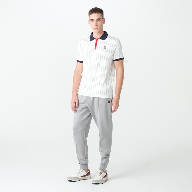 A polo é construída em meia malha de algodão de alta qualidade, um tecido que oferece uma sensação incrivelmente macia, respirável e confortável para o uso diário. A estampa Pinstripe adiciona um toque sutil e elegante, enquanto a modelagem regular com manga curta e gola polo em ribana garante um caimento clássico e atemporal. Os detalhes fazem toda a diferença: o peitilho contrastante com três botões e os punhos em ribana adicionam um toque de cor e textura, enquanto a barra com aberturas laterais proporciona maior liberdade de movimento e um ajuste perfeito. Para finalizar, o icônico patch F-Box é aplicado com elegância na parte frontal superior esquerda, reforçando a autenticidade da marca.