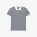 Design: Padrão de listras horizontais de alta precisão e gola polo estruturada.