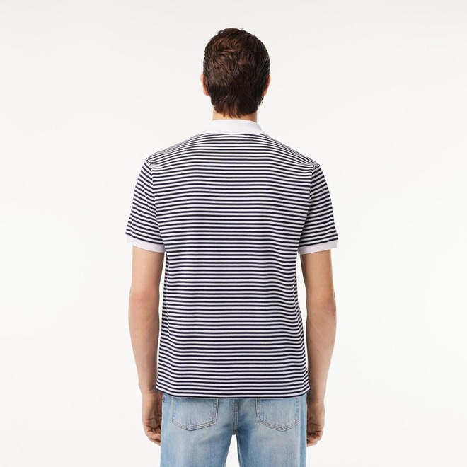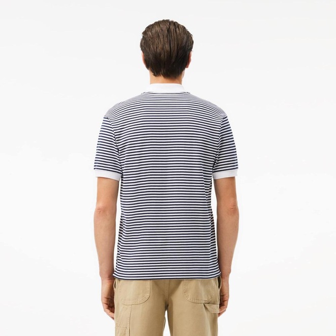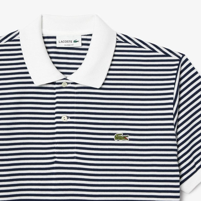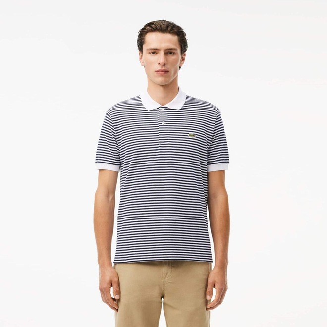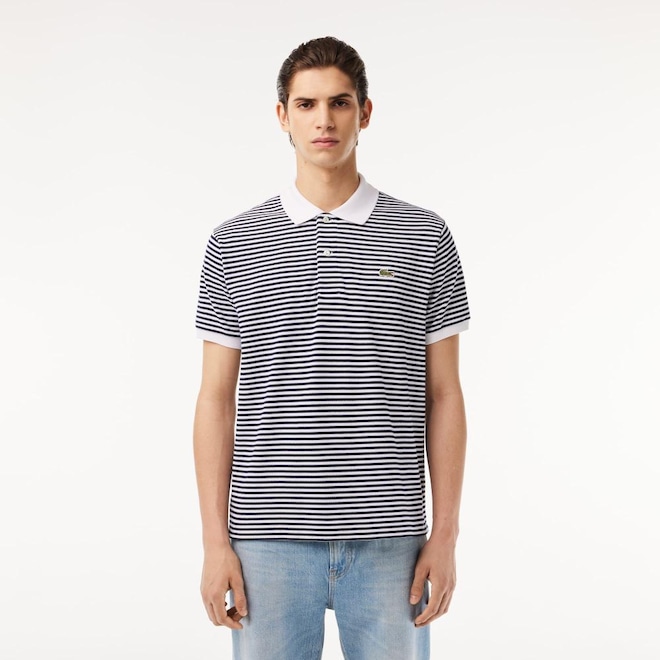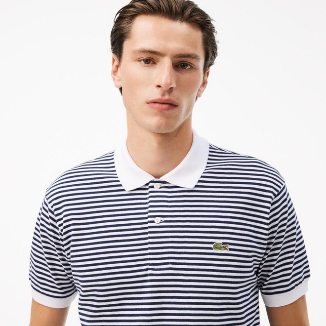 O clássico atemporal, agora em versão consciente. A Polo L.12.12 listrada é o pilar do guarda-roupa masculino, unindo conforto e história.