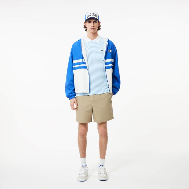 O clássico atemporal, agora em versão consciente. A Polo L.12.12 listrada é o pilar do guarda-roupa masculino, unindo conforto e história.