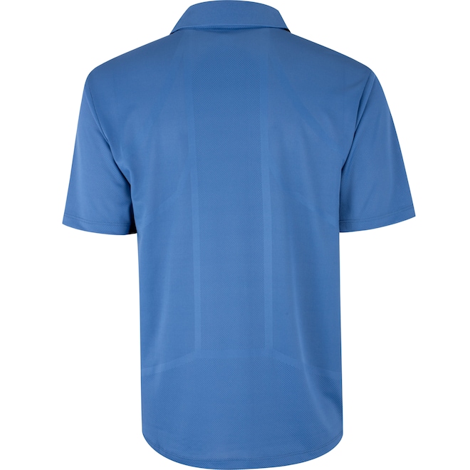 A gola polo canelada, com ajuste por botão e tira interna anti-atrito, oferece conforto incomparável durante todo o dia.
