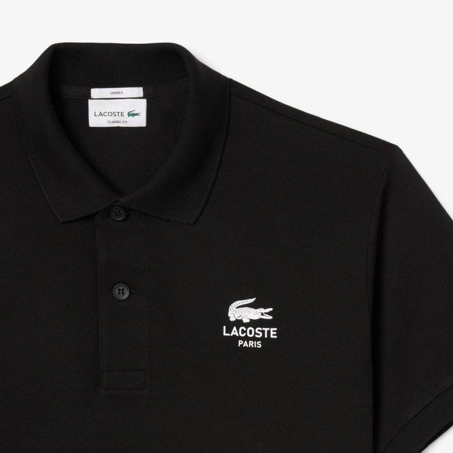 Destaque: Estampa com a assinatura da marca, celebrando o legado de René Lacoste de forma visual e moderna.