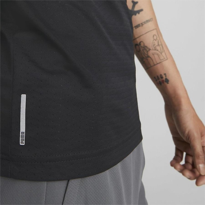 É uma excelente opção para pratica atividades físicas, aliando conforto e qualidade em uma única peça. Além disso a camiseta Puma é produzida com fibras recicladas, uma solução Puma para redução de impactos ambientais.