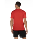 A camiseta possui gola careca com detalhe canelado e tira interna que diminui o atrito de contato junto à pele.