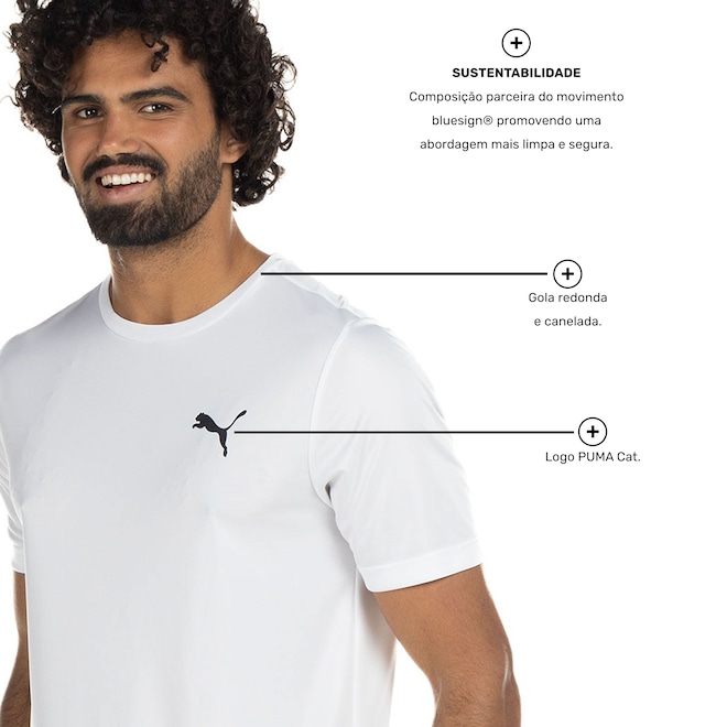 Para usar durante os treinos, a Camiseta Puma Manga Curta Active Small Logo é a pedida certa.